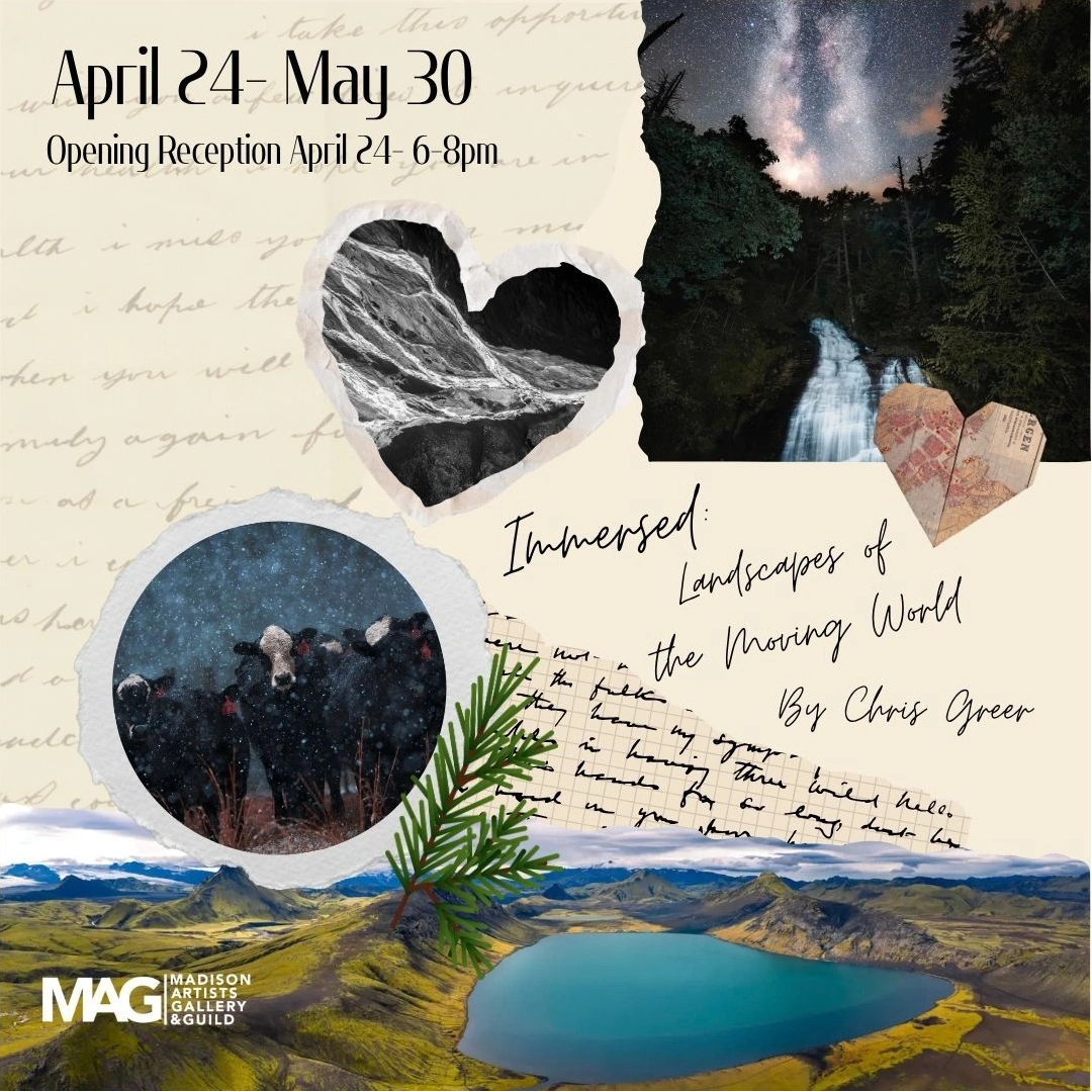 Join us for a Special Exhibition featuring landscape photographer Dr. Chris Greer. Titled Immersed: Landscapes of the Moving World, the exhibition opens with a public reception on Friday, April 24, 2026, from 6–8 p.m. and will be on view April 24–May 30, 2026 at Madison Artists Guild (125 W Jefferson Street, Madison, GA 30650).